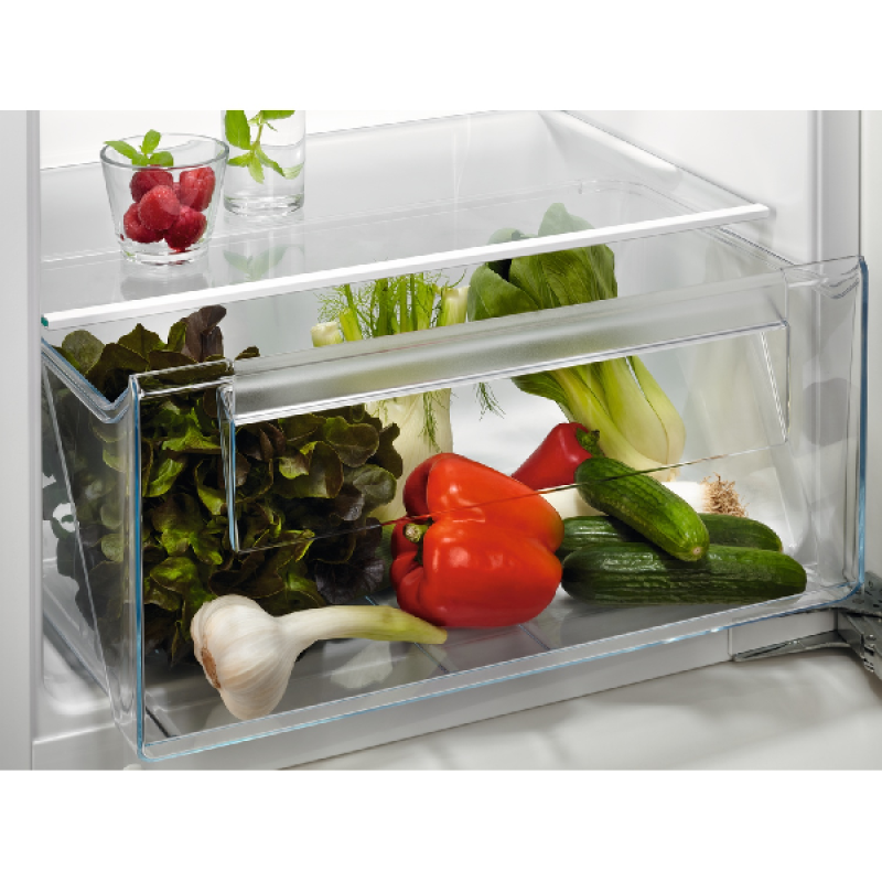 Dankzij het OptiSpace-ontwerp van deze AEG-koelkast pas je de binnenruimte eenvoudig aan je behoeften aan. Leggers en lades haal je vlot uit de koelkast en plaats je net zo makkelijk terug. Zo creëer je ruimte voor grotere boodschappen of een tijdelijke herindeling na een grote winkelronde. Deze flexibiliteit maakt het dagelijkse gebruik aangenamer en helpt je om de beschikbare ruimte efficiënt te benutten. Bovendien vergemakkelijkt het uitneembare ontwerp het schoonmaken van de koelkast.