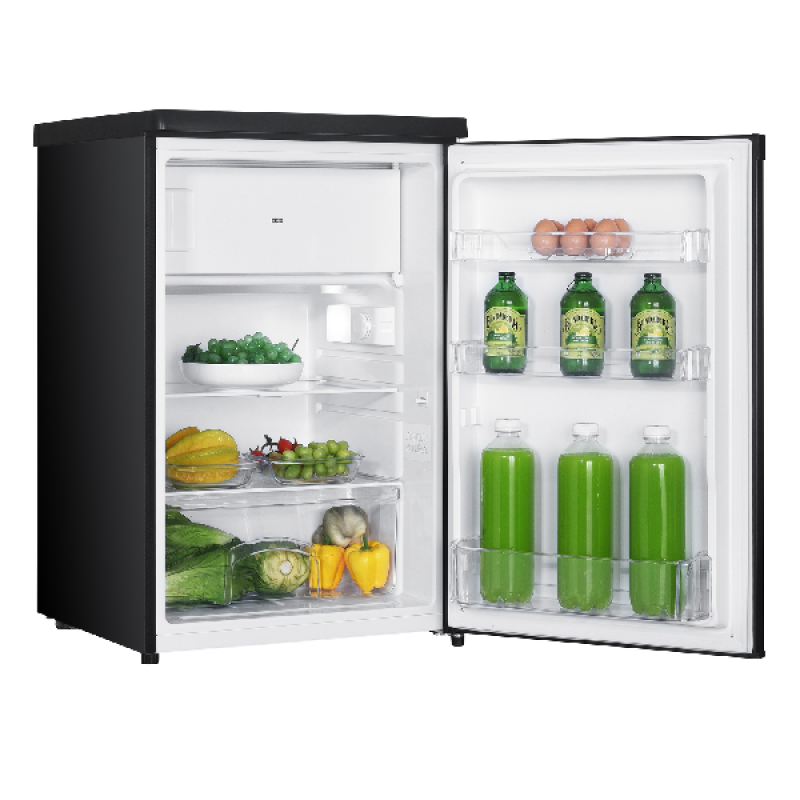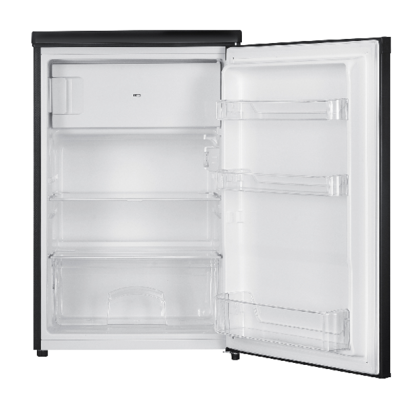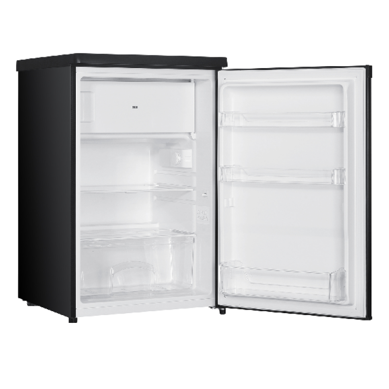 De zwarte KOENIC KFK 121 C B is een compacte, vrijstaande tafelkoelkast van het MediaMarkt-huismerk. Met een koelruimte van 95 liter en een vriesvak van 14 liter bovenaan, biedt hij voldoende plaats voor al je dagelijkse producten. Dankzij de elektronische bediening kies je makkelijk de juiste temperatuur. Verder beschikt het koelgedeelte over 2 verstelbare glazen legplanken, een groentelade en 3 handige deurvakken. Het vriesgedeelte ontdooi je handmatig. Bij stroomuitval blijven je etenswaren tot 10 uur goed bewaard. Tot slot zorgt het moderne design in zwart voor een stijlvolle touch in elke keuken of studio.