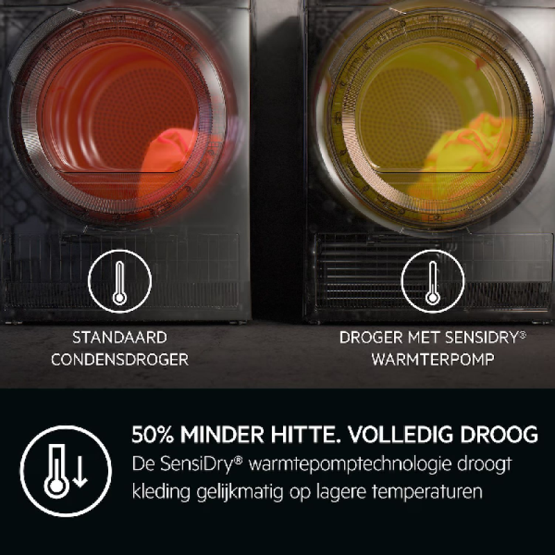 Naast de zuinige warmtepomptechnologie heeft AEG deze droogkast uitgerust met PreciseDry-technologie, die dankzij geoptimaliseerde vochtigheidssensoren, automatisch de droogtijd en het energieverbruik aanpast aan de belading. Zo droogt elke lading optimaal, waardoor je energie bespaart en de kwaliteit van je kleding behoudt. Door onnodige blootstelling aan hoge temperaturen te vermijden, verlengen deze technologieën de levensduur van je wasgoed en blijft het langer in uitstekende staat.