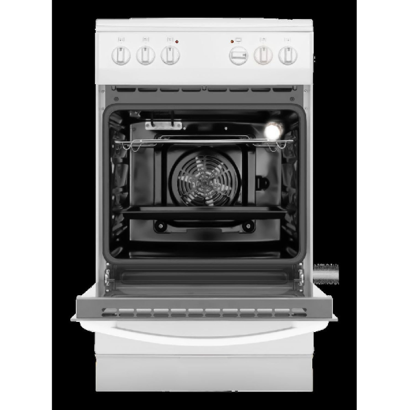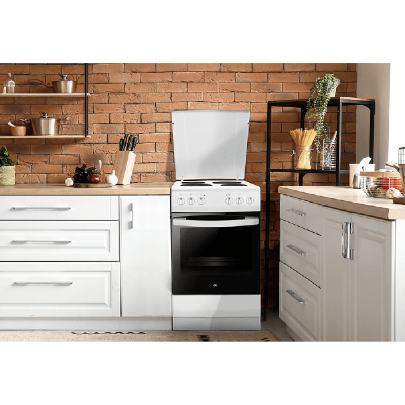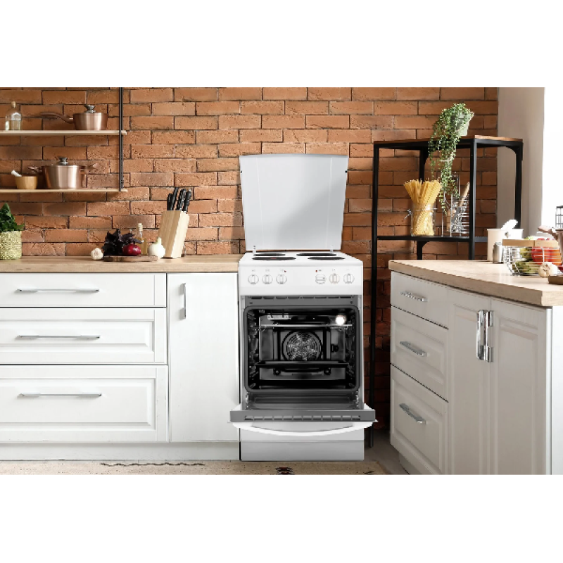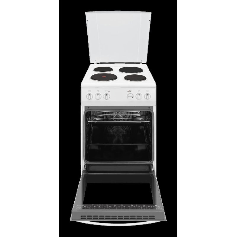 Dit OK elektrisch fornuis A in witte uitvoering biedt je met zijn 4 kookplaten en oven alles wat je nodig hebt om je kookkunsten voluit tentoon te stellen. De kookvelden van verschillende groottes zijn vervaardigd uit roestvrij staal en regel je met de handige draaiknoppen. Daarnaast is dit fornuis van een multifunctionele oven van 62 liter voorzien; naast de traditionele boven- en onderwarmte beschik je over een ontdooi- en voorverwarmingsfunctie. Na gebruik hoef je niet te schrobben, zowel het kookveld als de geëmailleerde binnenwanden van de oven maak je makkelijk schoon.