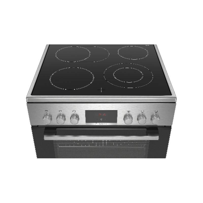 Deze elektrische Bosch HKR39C250 fornuis combineert een kookplaat en een oven in één apparaat en voldoet daarmee aan al je culinaire behoeften. Met zijn roestvrijstalen ontwerp past hij harmonieus in elke moderne keuken. Hij heeft afmetingen van (H x D x B) 85 x 60 x 60 cm en is eenvoudig vrijstaand te installeren. Hij bestaat uit een keramische kookplaat, een oven van 66 liter en een handige opberglade. Hij is eenvoudig te bedienen met behulp van de 6 draaiknoppen aan de voorkant en het kleine zwarte digitale scherm met rode LED-display laat je duidelijk zien welke kookmodus je hebt gekozen.
