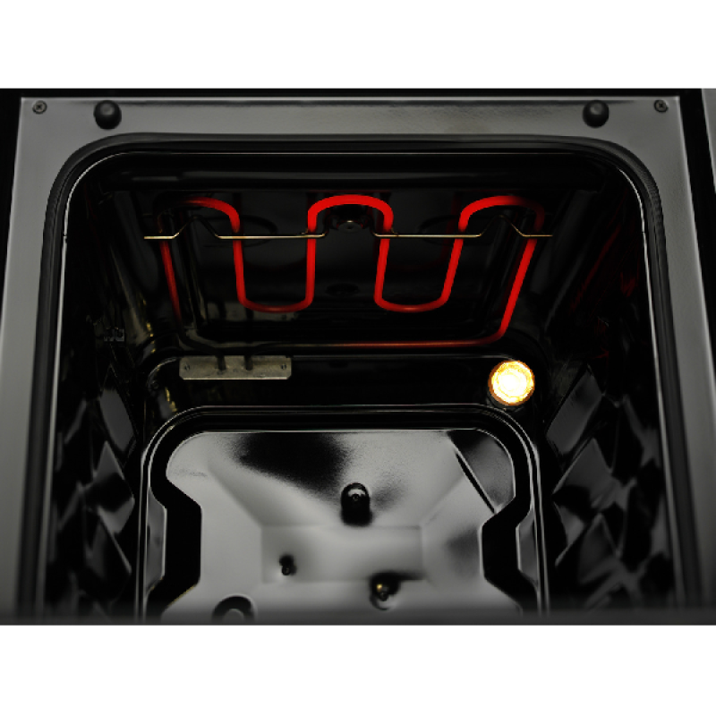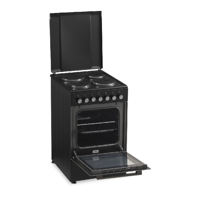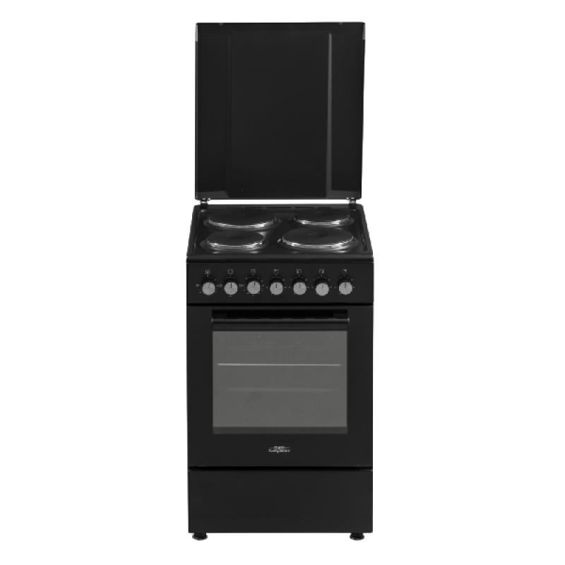 Dit zwarte elektrisch fornuis A van Everglades biedt je met zijn 4 kookplaten en oven alles wat je nodig hebt om je kookkunsten voluit tentoon te stellen. De gietijzeren kookvelden van verschillende groottes regel je met de handige draaiknoppen, en garanderen een gelijkmatige temperatuur. Daarnaast is dit fornuis van een multifunctionele oven van 51 liter voorzien, die over conventionele boven- en onderwarmte beschikt en een maximale temperatuur van 240° C haalt. Na gebruik maak je hem eenvoudig schoon.