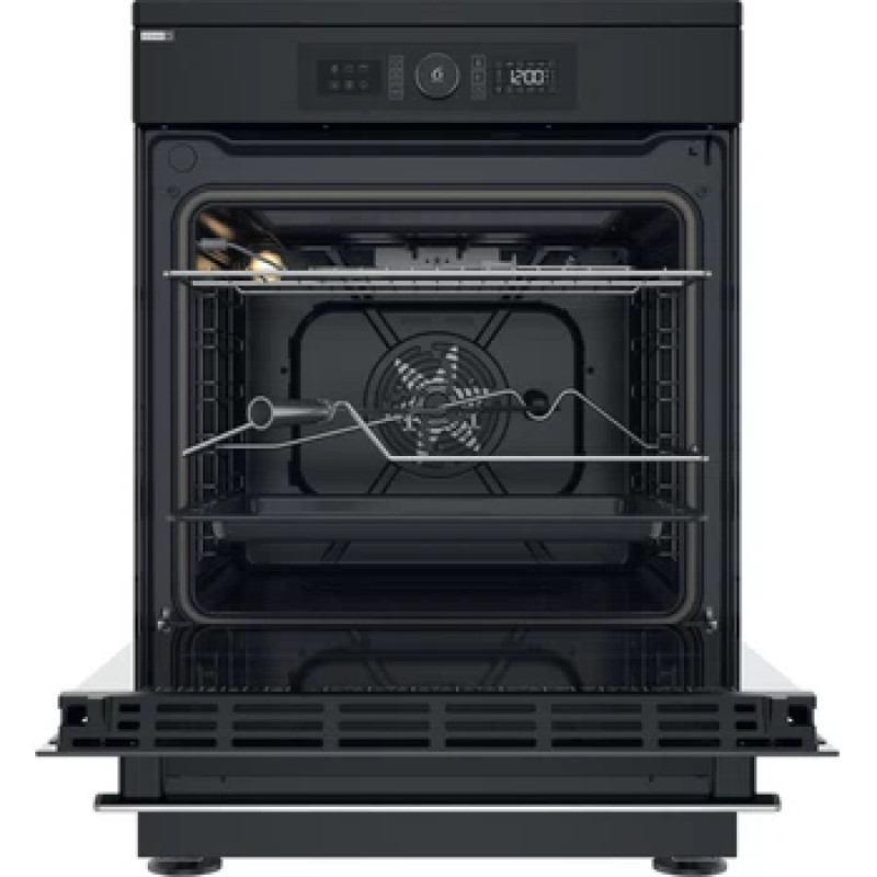 Dit Whirlpool Inductiefornuis heeft standaardafmetingen en is eenvoudig vrijstaand te installeren. Het toestel beschikt over een inductiekookplaat en een oven met een inhoud van 83 liter. De zwarte afwerking geeft het dan weer een chique en elegante uitstraling. Je bedient het heel eenvoudig met de aanraaktoetsen en draaiknoppen aan de voorkant. De kookplaat heeft 4 verwarmingszones met verschillende vermogens - van 1200 tot 2100 watt. De 2 zones aan de linkerkant kan je samen combineren om een grotere zone te creëren. Koken met een inductiekookplaat is eenvoudig en efficiënt: dankzij de gelijkmatige warmteverdeling en snelle opwarming is je eten snel klaar. De oven is uitgerust met Pulsed Air en Pyrolyse technologieën die optimale prestaties en eenvoudige reiniging garanderen. Je gebruikt de oven zowel voor conventioneel koken als voor koken met stoom en biedt zo een breed scala aan kookmogelijkheden. En als klap op de vuurpijl is dit fornuis energiezuinig, met een energie-efficiëntieklasse A.