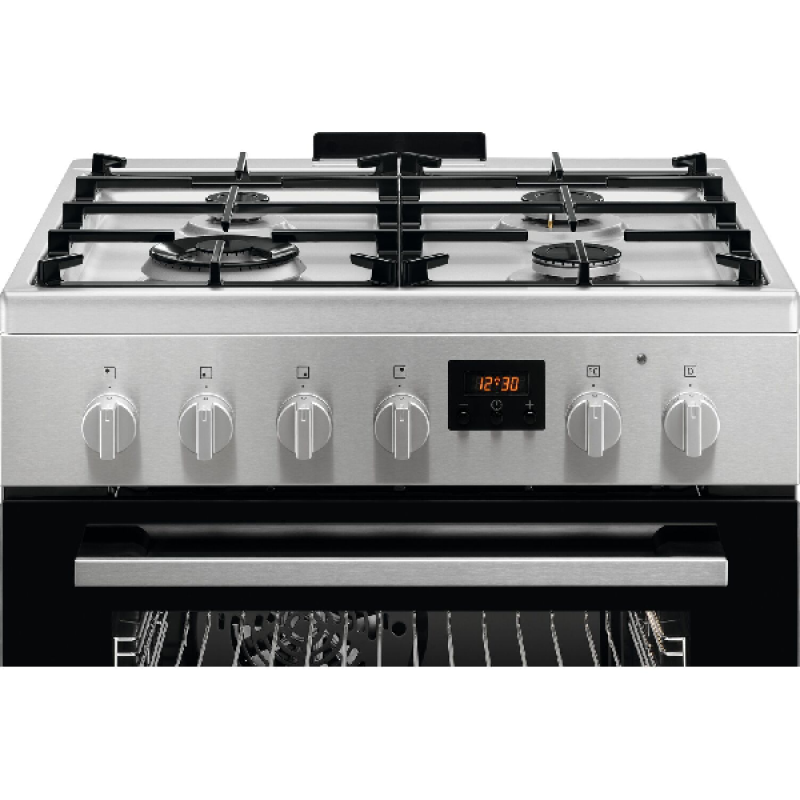 Het combifornuis CKB64414BM van AEG heeft een verfijnd ontwerp in roestvrij staal en zwart, dat perfect past in moderne keukens. Het bestaat uit een gaskookplaat met 4 pitten en een elektrische oven van 57 liter. De gietijzeren roosters zorgen voor optimale stabiliteit van potten en pannen, zelfs bij intensief koken. De heteluchtoven zorgt voor een gelijkmatige warmteverdeling, waardoor je gerechten op alle niveaus gelijkmatig worden gegaard. Bovendien is het fornuis eenvoudig en intuïtief te bedienen met de draaiknoppen aan de voorkant, waarmee je de temperatuur nauwkeurig kunt instellen, wat het gebruik zeer aangenaam maakt.