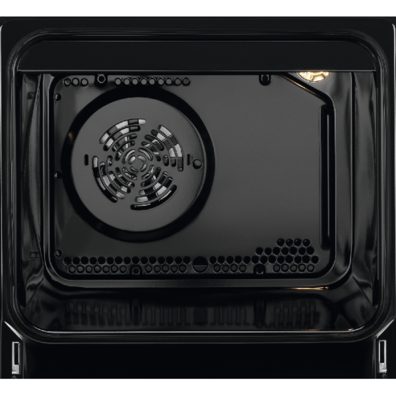 (+) Eenvoudige reiniging: de zwarte emaille coating van de oven vergemakkelijkt het onderhoud door te voorkomen dat resten zich vastzetten.