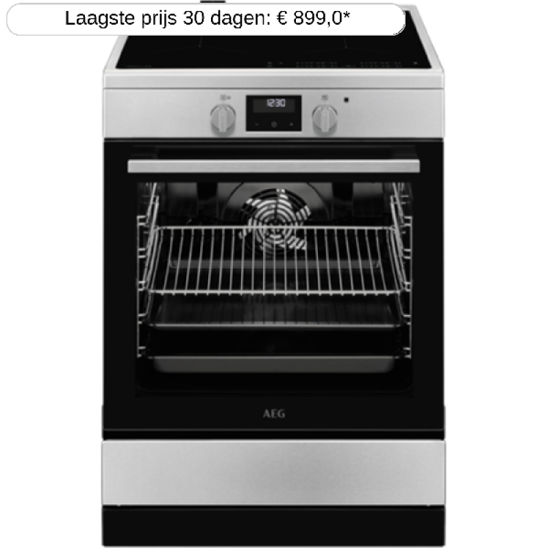 Met zijn zwarte en roestvrijstalen afwerking en afmetingen van (BxDxH) 59,6 x 60 x 85 cm past het inductiefornuis CIB6641ABM van AEG harmonieus in elke moderne keuken. Door de combinatie van een gebruiksvriendelijke zwarte inductiekookplaat met 4 zones en een heteluchtoven van 70 liter is hij geschikt voor kleine keukens. Hij is eenvoudig vrijstaand tussen twee kasten te installeren, zodat hij discreet in je keuken past. AEG heeft dit fornuis uitgerust met geavanceerde technologieën om nauwkeurig te koken en tegelijkertijd energie te besparen. Met een energie-efficiëntie-index van 95,3 heeft het apparaat het A-label gekregen.