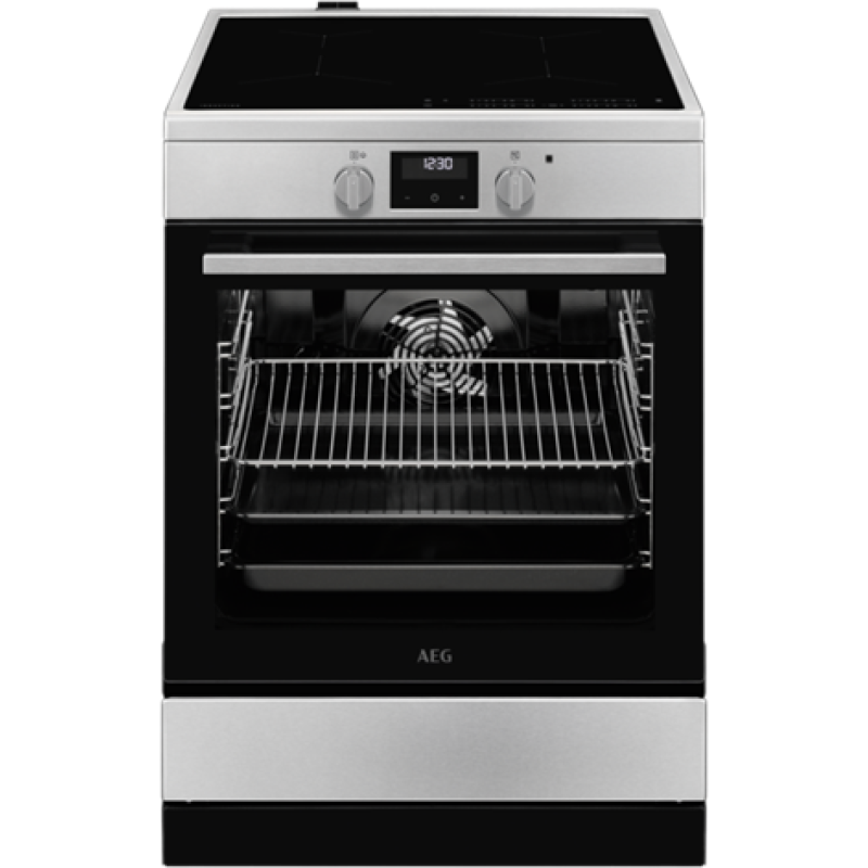 Met zijn zwarte en roestvrijstalen afwerking en afmetingen van (BxDxH) 59,6 x 60 x 85 cm past het inductiefornuis CIB6641ABM van AEG harmonieus in elke moderne keuken. Door de combinatie van een gebruiksvriendelijke zwarte inductiekookplaat met 4 zones en een heteluchtoven van 70 liter is hij geschikt voor kleine keukens. Hij is eenvoudig vrijstaand tussen twee kasten te installeren, zodat hij discreet in je keuken past. AEG heeft dit fornuis uitgerust met geavanceerde technologieën om nauwkeurig te koken en tegelijkertijd energie te besparen. Met een energie-efficiëntie-index van 95,3 heeft het apparaat het A-label gekregen.