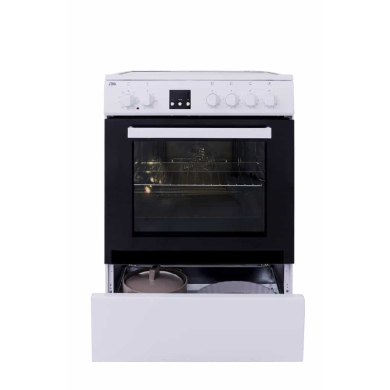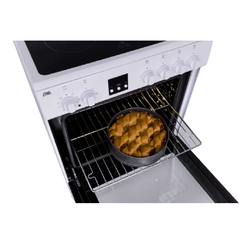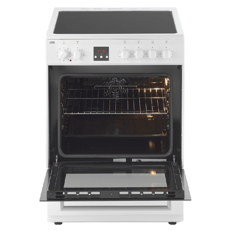 Met deze FIV760WIT inductiefornuis van het Nederlandse merk ETNA heb je alles wat je nodig hebt om elke dag heerlijk te koken. Met zijn standaardafmetingen is het apparaat eenvoudig vrijstaand in elke keuken te installeren. De witte afwerking geeft het een elegante uitstraling, die in elk interieur past. Het fornuis beschikt over een inductiekookplaat, een oven met een inhoud van 58 liter en een praktische opberglade. De kookplaat heeft 4 verwarmingszones met verschillende vermogens - van 1.800 tot 2.500 watt. Koken met een inductiekookplaat is eenvoudig en efficiënt: dankzij de gelijkmatige warmteverdeling en snelle opwarming is je eten snel klaar. De oven biedt alle essentiële functies die je van een conventionele oven kan verwachten. Je bedient het apparaat heel eenvoudig met de draaiknoppen aan de voorkant. En als klap op de vuurpijl is dit fornuis energiezuinig, met een energie-efficiëntieklasse A.