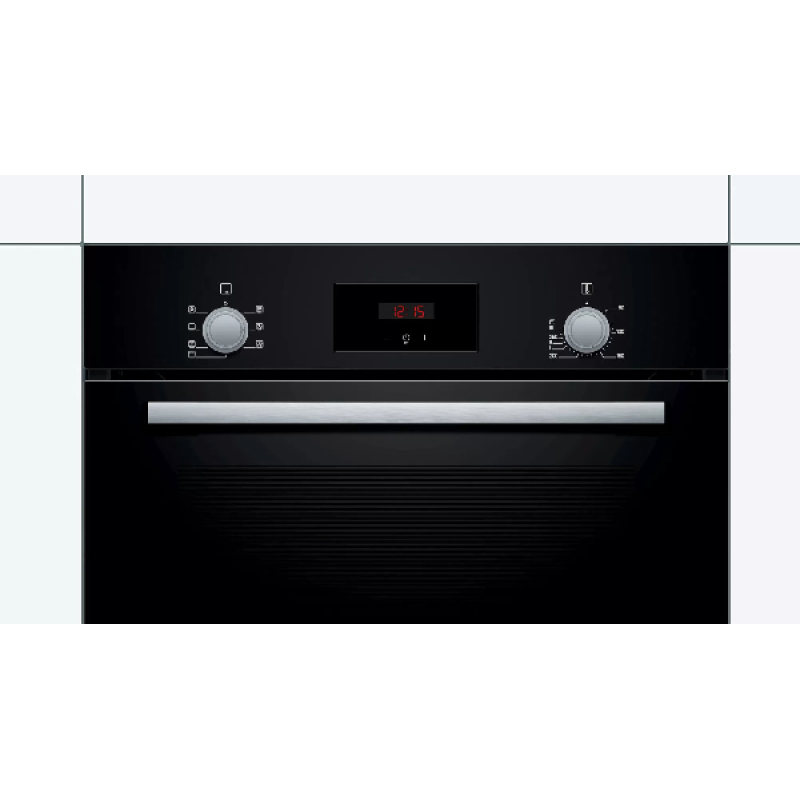 Deze Bosch oven is heel eenvoudig te bedienen dankzij de intrekbare roestvrijstalen draaiknoppen op het bedieningspaneel. Gebruik de 1e knop om de kookstand te selecteren en de 2e om de temperatuur aan te passen. De timer activeer je met de aanraakgevoelige knoppen onder de klok. Binnenin is de geëmailleerde ovenruimte van 66 liter gemakkelijk schoon te maken dankzij de EuroClean-functie en een speciale coating op de achterwand die automatisch vuil absorbeert. Met zijn basisfuncties is deze inbouwoven ideaal om snel en eenvoudig heerlijke maaltijden te bereiden.