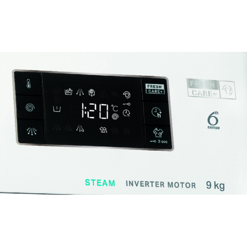 Deze Whirlpool wasmachine heeft een trommel waar je tot 9 kilo wasgoed in kan laden. Hij beschikt over een krachtige motor voor de uitvoering van de 10 beschikbare wasprogramma’s. De 6th Sense-technologie past automatisch de hoeveelheid water, energie en tijd aan die nodig is voor elke wascyclus. Dit gebeurt op basis van de hoeveelheid wasgoed en het type stof. Het apparaat heeft energie-efficiëntieklasse A: dus zuinig met water en energie. Ze verbruikt maar 50 liter water in eco-modus en slechts 40 kWh per 100 wascycli.