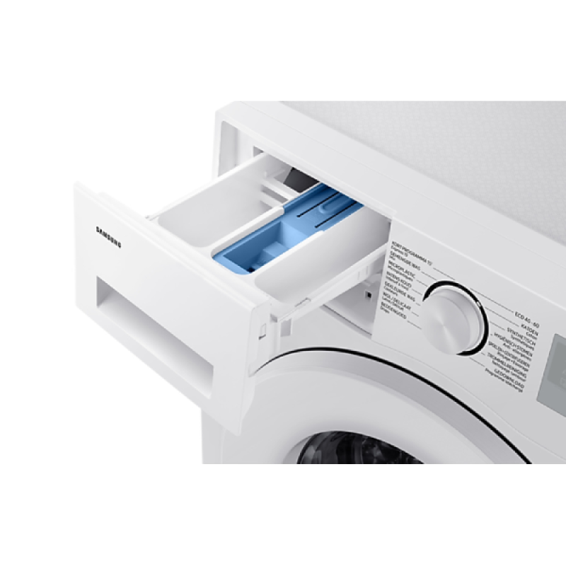 Samsung heeft deze wasmachine uitgerust met een Digital Inverter motor - met een garantie van 20 jaar - die voor maximale energie-efficiëntie zorgt, een minimum aan geluid en langdurige prestaties. Dankzij krachtige magneten werkt de motor stil en levert hij optimale prestaties. Bovendien is deze slimme wasmachine compatibel met het SmartThings-systeem van Samsung, zodat je de prestaties van je machine op afstand kan controleren. Door de AI-energiemodus in de app te activeren, kan je je verbruik in de gaten houden en tot 70% energie besparen. De wasmachine is eenvoudig te bedienen met de draaiknop en op het zwarte lcd-scherm zie je de voortgang van de cyclus en de geselecteerde functies.