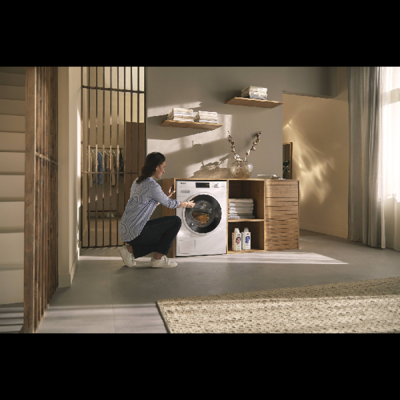 (+) Ruime voorlader: de MIELE WWA 120 WCS wasmachine heeft een ruime capaciteit van 8 kg, waardoor ze ideaal is voor grote gezinsladingen.