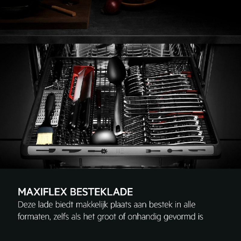 Deze omvangrijke vrijstaande vaatwasser bevat alles voor een efficiënte en handige reiniging. Hij biedt ruimte voor zo’n 14 couverts en de binnenkant is middels de MaxiFlex-lade en de QuickLift-korf aanpasbaar. De lade voorziet flexibele verdelers en een maximale hoogte om plaats voor eender welke lading te garanderen. Bestek en keukengerei van elk formaat, klein, groot of met een afwijkende vorm, passen er probleemloos in. Voorts geniet je dankzij de in hoogte verstelbare QuickLift-korf van extra gemak, zodat je de vaat in geen tijd laadt of verwijdert. Zo heb je meteen weer schoon keukengerei voor je volgende maaltijden.
