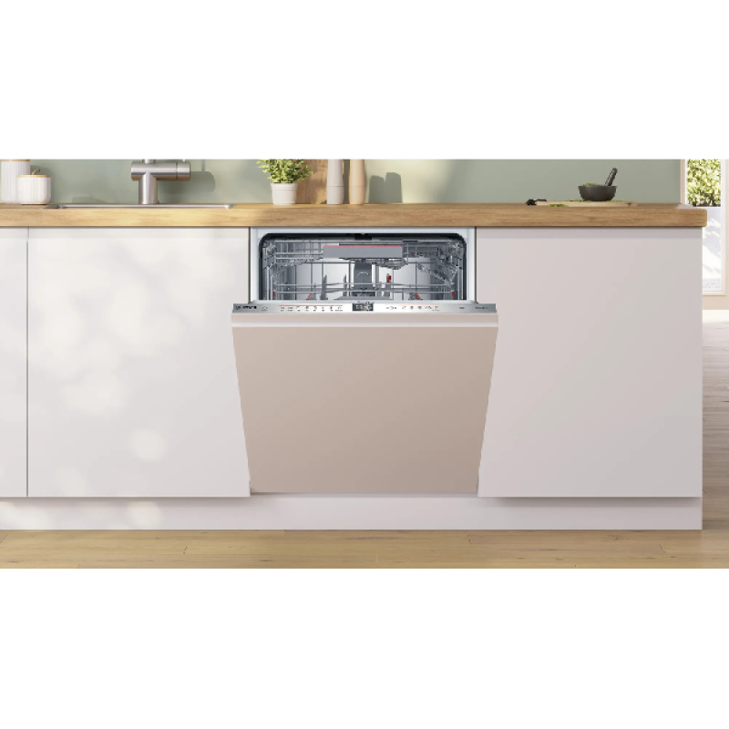 Deze inbouwvaatwasser zal zeer discreet in je keuken staan, verborgen achter een paneel. Hij heeft een capaciteit van 13 couverts en is perfect voor gezinnen van 4 à 5 personen. Bosch heeft dit toestel uitgerust met 3 verstelbare Max Flex-opbergkorven om de vaat flexibel in te laden. De onderste lade heeft bijvoorbeeld praktische uitklapbare pinnen waarop je indien nodig een extra bestekmand kan plaatsen. De besteklade helemaal bovenaan heeft een uitneembaar messenbakje, zodat je bijvoorbeeld zonder gedoe hoge wijnglazen in de middelste lade kan plaatsen.