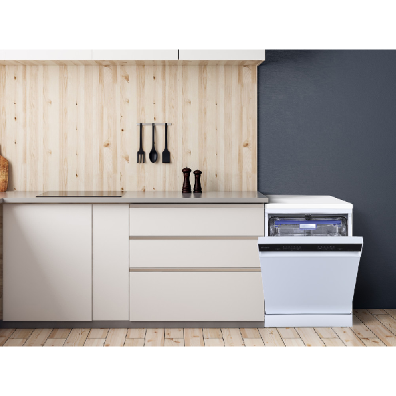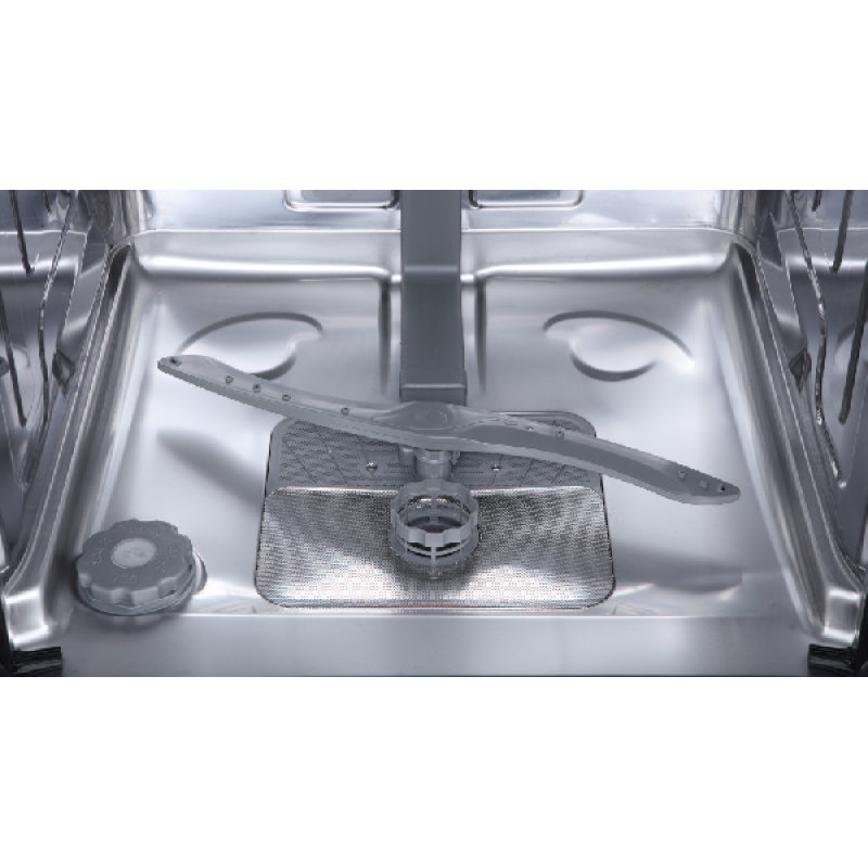 In deze praktische vaatwasser raak je tot 14 standaard couverts kwijt. Hiermee kun je dus gemakkelijk een huishouden van 3 tot 4 personen voorzien. Dankzij de standaardafmetingen met een hoogte van 84,5 cm, breedte van 59,8 cm en een diepte van 60 cm sluit de vaatwasser naadloos aan bij elke keuken. Naast de typische lade voor borden en pannen en de bovenlade voor glazen, mokken en kleiner keukengerei voorziet dit toestel een handige, compacte besteklade. Hierin kun je al je courante bestek kwijt, alsook tal van grotere keukenmessen of spatels.