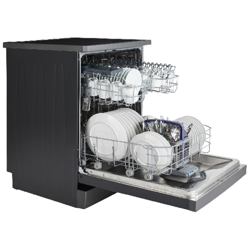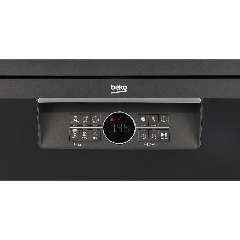 De Beko BDFN26430A in antraciet uitvoering is een vrijstaande vaatwasser met tal van praktische functies. Hij draagt het energielabel D en beschikt over een laadvermogen van 14 couverts. Hij voorziet 6 programma's, waaronder een kort programma van 30 minuten en een Eco-programma om energie, water en het milieu te sparen. Daarnaast zorgt de extra SteamGloss-optie van 10 minuten dat je glazen er als nieuw uitzien. Aan het einde van elke vaatwascyclus opent de Selfdry-functie automatisch de deur, waardoor je servies op natuurlijke wijze droogt. Dankzij de eenvoudig inklapbare steunen en schuivende bestekbak maak je bovendien makkelijk plaats voor grote potten of pannen en is het in- en uitladen zo gebeurd.