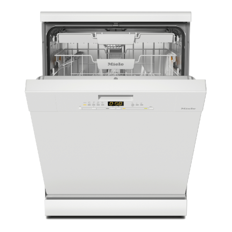 De Miele G 5611 SC BRWS in briljantwit is een vrijstaande vaatwasser met een strak en tijdloos ontwerp dat moeiteloos in elke keuken past. Met afmetingen van 59,8 x 84,5 x 60 cm (B/H/D) is hij eenvoudig te plaatsen en biedt hij voldoende ruimte voor je dagelijkse afwas. Dankzij de EcoPower-technologie en energieklasse A is het energieverbruik laag, wat zowel milieuvriendelijk als kostenefficiënt is. Het Automatic-programma verbruikt slechts 6 liter water, waardoor je water bespaart zonder in te boeten op reinigingsprestaties. Bovendien beschikt deze vaatwasser over een warmwateraansluiting tot 60 °C, wat kan leiden tot een stroomreductie tot 35%.