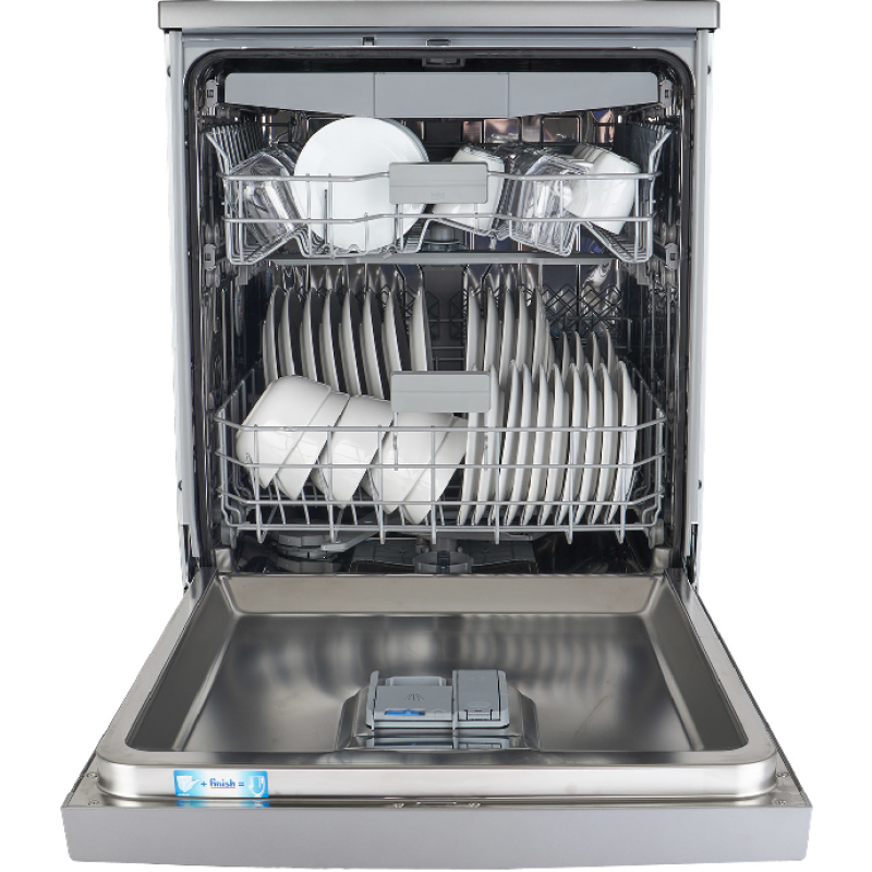 Deze RVS vrijstaande vaatwasser van BEKO heeft standaardafmetingen (59 x 85 x 60 cm): hij past dus gemakkelijk onder een werkblad. Hij heeft een capaciteit van 16 couverts en is uitgerust met drie in hoogte verstelbare opbergmanden om de binnenruimte te optimaliseren. De besteklade, die zich bovenaan bevindt, vergemakkelijkt het sorteren van bestek; de tussenkorf voor kopjes en glazen heeft 2 inklapbare planken om kleine bakjes op te plaatsen; en ten slotte heeft de onderste lade opvouwbare pinnen om grote schalen en pannen eenvoudig te plaatsen.