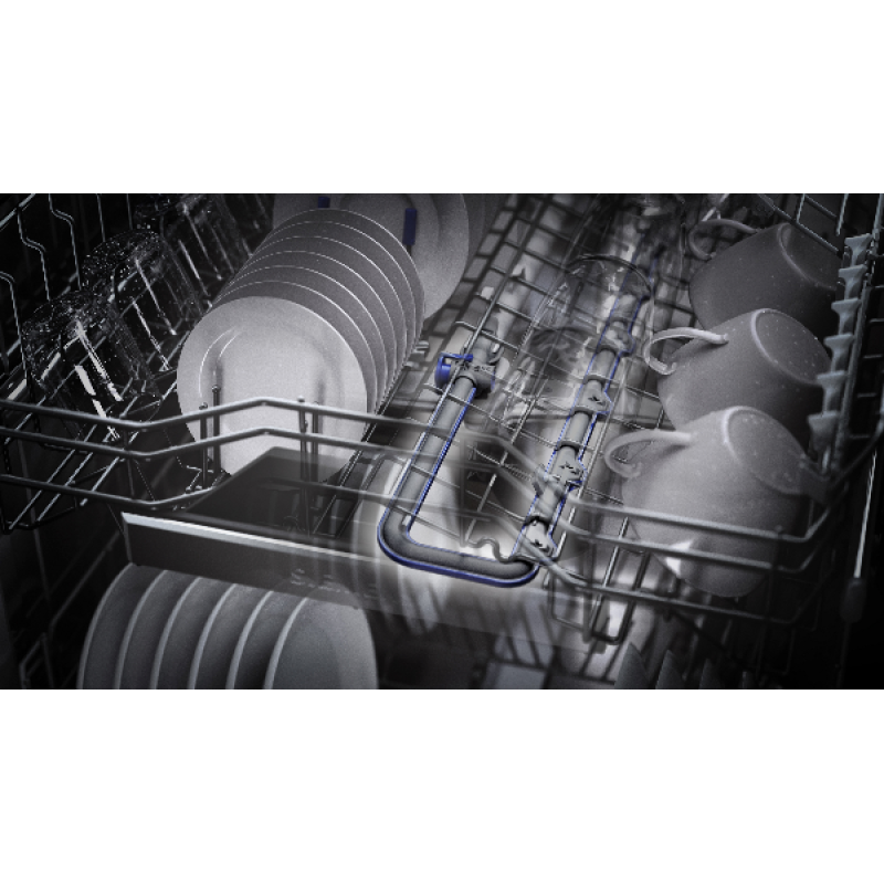 Deze vaatwasser heeft energieklasse A en verbruikt slechts 9 liter water per Eco-cyclus, wat bijdraagt aan aanzienlijke energie- en waterbesparingen voor je huishouden en de planeet. Het autoOpen Dry-droogsysteem zorgt voor een efficiënte droging door de deur aan het einde van de cyclus automatisch te openen, waardoor de lucht op natuurlijke wijze kan circuleren. Zo ben je verzekerd van droog serviesgoed wanneer je de vaatwasser leegt. De iQdrive-motor, bekend om zijn duurzaamheid en efficiëntie, werkt relatief stil met 42 dB, wat zorgt voor een rustige omgeving in je keuken. Bovendien verhoogt de intensiveZone-functie de waterdruk in de onderste korf voor een grondige reiniging van zeer vuile potten en pannen, terwijl het delicate vaatwerk in de bovenste korf voorzichtig wordt gewassen.