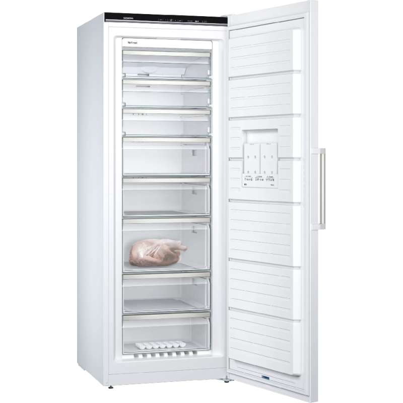 Dankzij de geïntegreerde noFrost-technologie hoef je dit Siemens-model nooit te ontdooien. De noFrost-functie onttrekt vocht en houdt de lucht droog, waardoor de kwaliteit van de inhoud langer behouden blijft. Dit bespaart niet alleen tijd maar ook energie, omdat een vriezer zonder ijsvorming efficiënter is. Bovendien beschikt hij over MultiAirflow-technologie, die zorgt voor een gelijkmatige luchtcirculatie en constante temperaturen. Dit betekent dat voedsel dat slechts korte tijd in de vriezer staat, sneller afkoelt, zonder dat producten die er langere tijd in staan opwarmen.