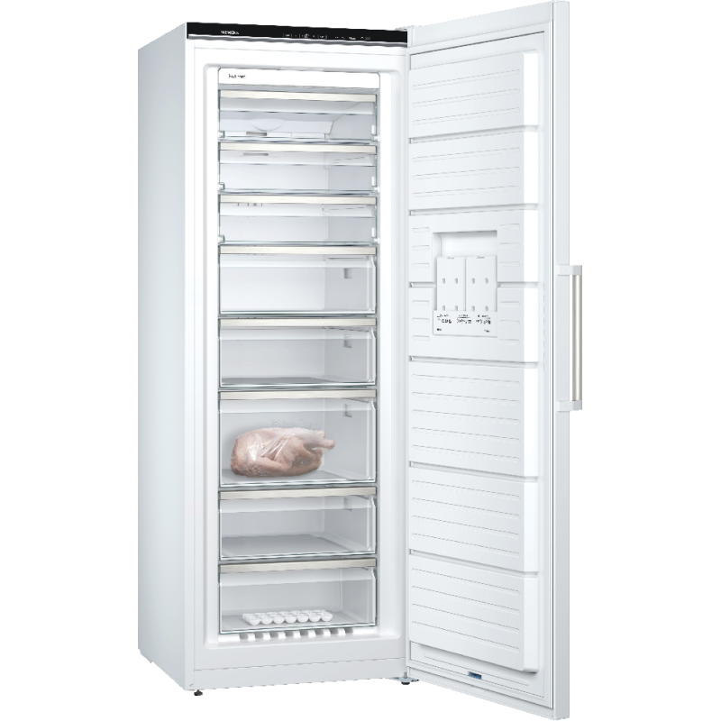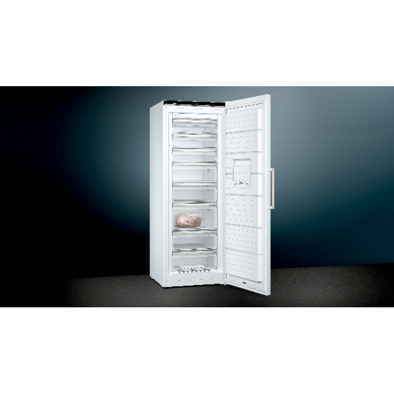 Deze ruime diepvriezer van Siemens heeft een stijlvol maar discreet ontwerp en is vrijstaand. Dit biedt meerdere voordelen. Ten eerste past hij overal in huis, zonder rekening met andere inbouwapparatuur te hoeven houden. Ten tweede laat de royale capaciteit van deze vrieskast het toe om aanzienlijke hoeveelheden voedsel op te slaan, wat ideaal is voor kroostrijke gezinnen of voor wie regelmatig in bulk inkoopt. De handige opbergvakken en verstelbare schappen maken het bovendien een stuk overzichtelijker.