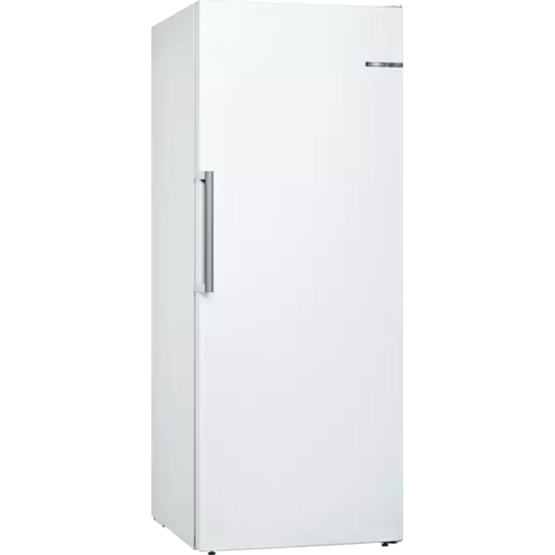 In deze grote Bosch GSN54DWCV Serie 6 vriezer kun je gemakkelijk een grote hoeveelheid etenswaren bewaren. Met zijn afmetingen van 70 x 176 x 78 is hij namelijk groter dan een standaard koelkast. Hij is echter eenvoudig vrijstaand te plaatsen in de garage of bijkeuken en staat, dankzij de verstelbare poten, op elke vloer recht. Hij heeft een klassiek design en de omkeerbare deur biedt veel flexibiliteit. Afhankelijk van waar je hem uiteindelijk neerzet monteer je de deur met de opening naar rechts of naar links.
