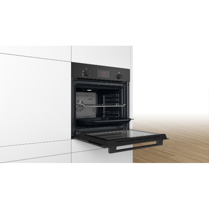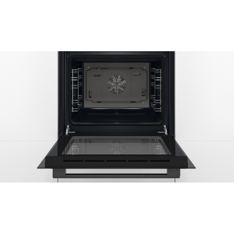 De Bosch HBF133BA1 heeft een strak zwart design dat naadloos past in elke moderne keuken. Met een inhoud van 66 liter biedt hij voldoende ruimte voor familiegerechten of meerdere bereidingen tegelijk. De volledig glazen deur en de inox handgreep geven het toestel een elegante, hedendaagse uitstraling, terwijl het inbouwformaat de beschikbare keukenruimte optimaal benut. De antraciet geëmailleerde ovenruimte zorgt voor een betere warmtebehoud en snellere, gelijkmatige bereidingen: stijl en functionaliteit in één. Deze oven staat garant voor comfortabel gebruik, dag na dag.