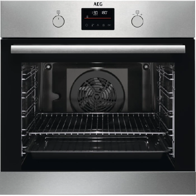 Met de AEG Multifunctionele oven Pyroluxe A+ (BPS335061M) in zwartgrijze uitvoering kook je met gemak meerdere gerechten of extra grote porties. Heb je bijvoorbeeld regelmatig familie of vrienden over de vloer, dan zal deze handige inbouwoven zeker van pas komen.
