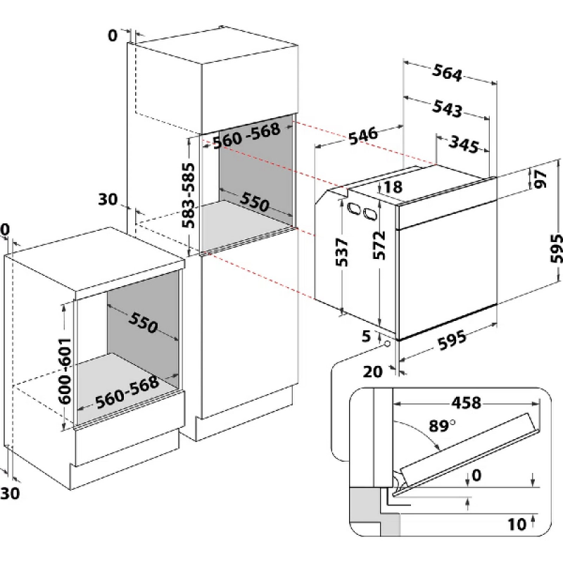 | Diepte bij geopende deur (90°) | 56.4 |
