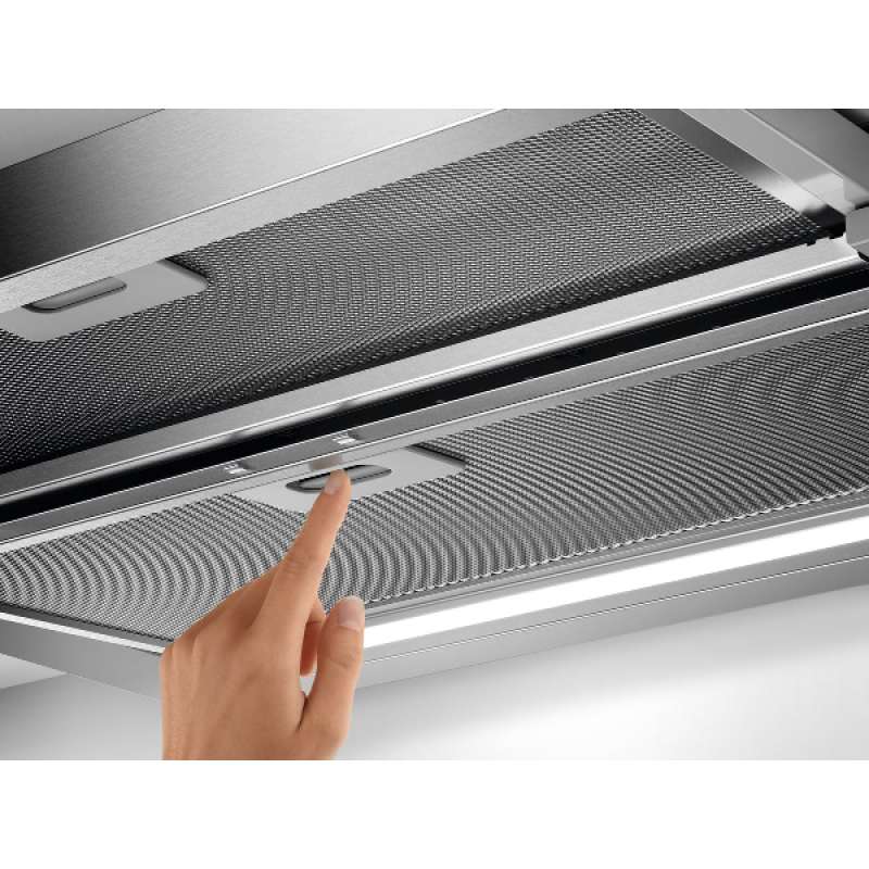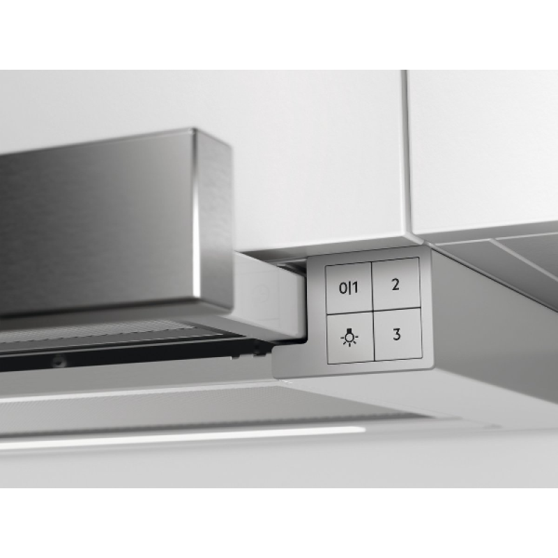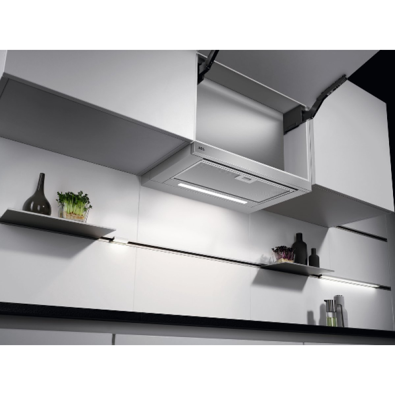 De AEG telescopische dampkap A (DPE5650M ) van 60 cm past discreet in je keukenkast en verschijnt alleen wanneer je ze nodig hebt. Het telescopische ontwerp zorgt voor een strakke, opgeruimde uitstraling zonder vaste zichtbare kap. De inox afwerking oogt modern en is eenvoudig schoon te houden. Met een hoogte van 39,5 cm en een diepte van 30 cm neemt de dampkap weinig ruimte in, terwijl ze geschikt blijft voor zowel luchtafvoer naar buiten als recirculatie, afhankelijk van je keukenopstelling.