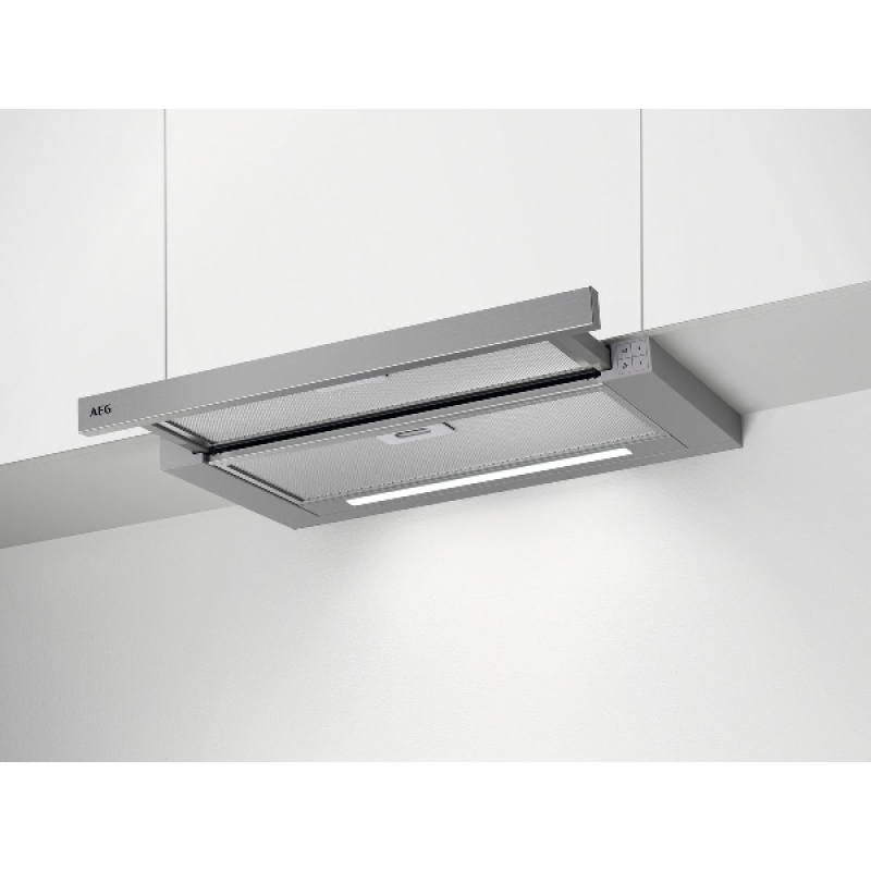 De AEG telescopische dampkap A (DPE5650M ) van 60 cm past discreet in je keukenkast en verschijnt alleen wanneer je ze nodig hebt. Het telescopische ontwerp zorgt voor een strakke, opgeruimde uitstraling zonder vaste zichtbare kap. De inox afwerking oogt modern en is eenvoudig schoon te houden. Met een hoogte van 39,5 cm en een diepte van 30 cm neemt de dampkap weinig ruimte in, terwijl ze geschikt blijft voor zowel luchtafvoer naar buiten als recirculatie, afhankelijk van je keukenopstelling.