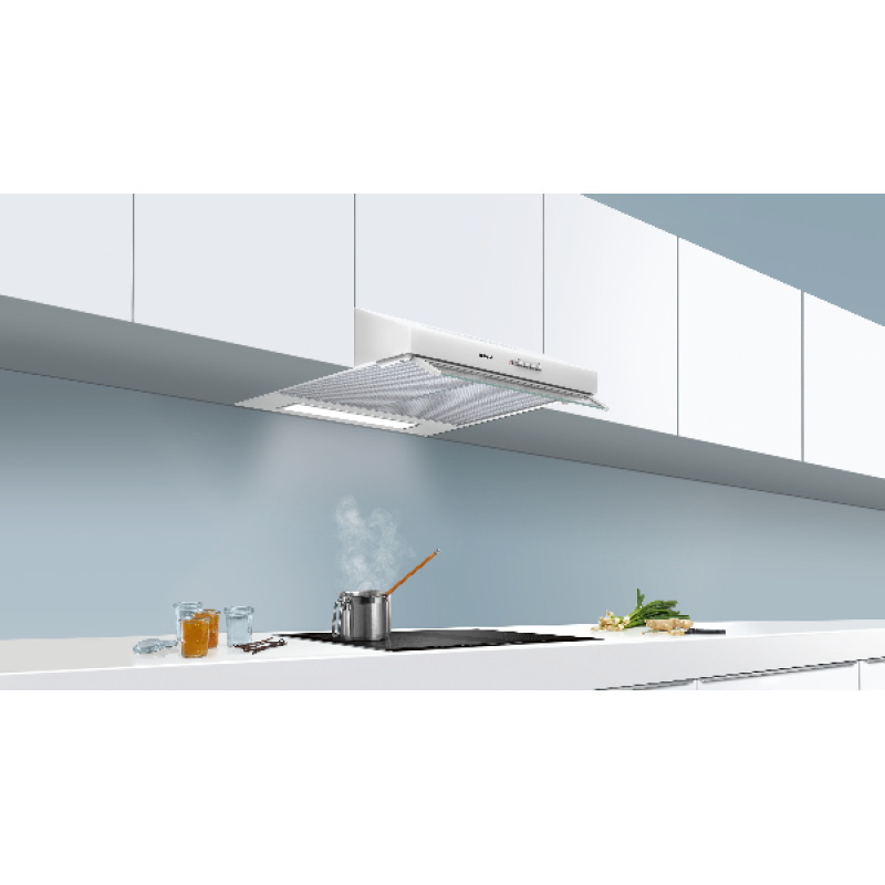 De afzuigcapaciteit van 350 m3/h zorgt voor schone lucht tijdens het koken.