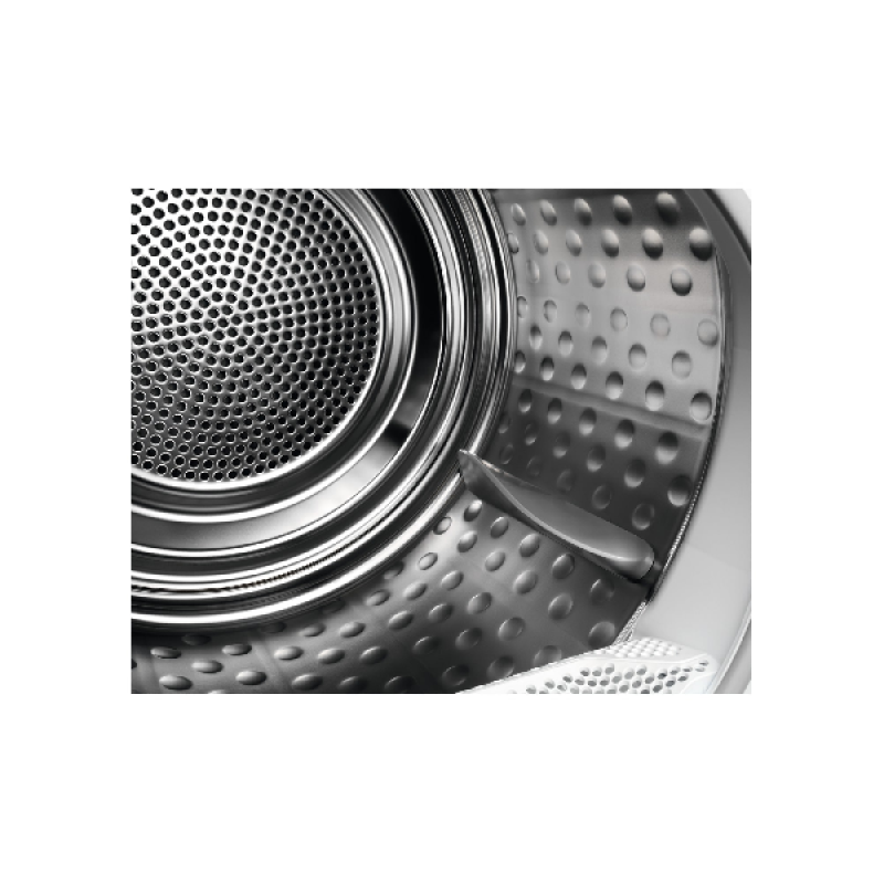 De witte AEG ProSteam Serie 7000 TR78L32B warmtepomp droogkast garandeert, dankzij zijn efficiënte invertermotor en PreciseDry-technologie, een perfect droogresultaat. Je beschikt over 8 kg trommelcapaciteit en 10 programma’s voor elk soort stof.