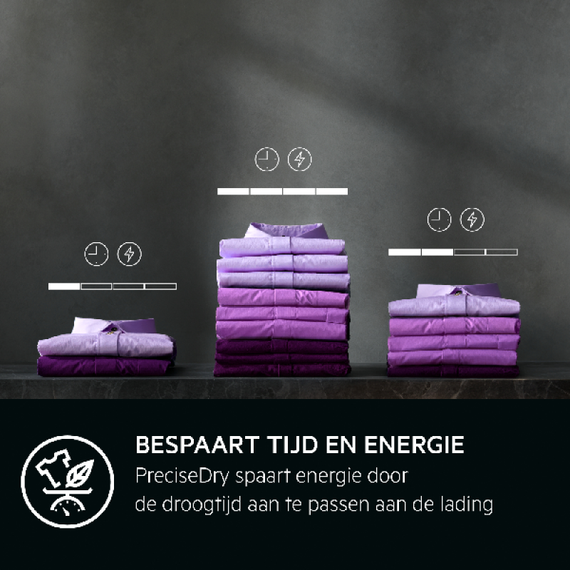 Met de gepatenteerde innovaties van AEG geniet je steeds van een perfect resultaat. De PreciseDry-sensoren analyseren de vochtigheid van het wasgoed en stemmen hier de tijd en het verbruik op af. Zo garandeert de TR78L32B een nauwkeurig resultaat aan de juiste temperatuur en zonder energieverspilling. Ook gaan je kleren op deze manier heel wat langer mee. Daarnaast beschikt de droogkast over SensiDry-technologie, dat delicate kledij op een extra lage temperatuur gelijkmatig droogt. Op die manier komen je gevoelige stukken kastdroog en ongeschonden uit de droger.