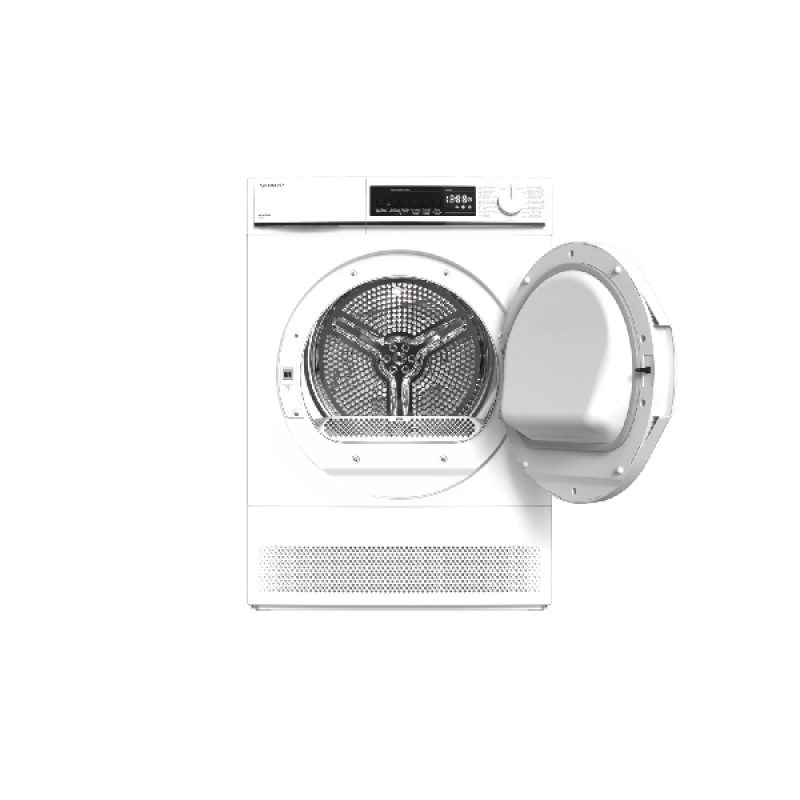 De witte KD-NC8PW-BE condensatiedroogkast van Sharp heeft een elegant ontwerp en is eenvoudig vrijstaand in elke badkamer of bijkeuken te installeren. Dankzij de indrukwekkende capaciteit van 8 kg kun je grote hoeveelheden wasgoed in één keer drogen. Hij is voorzien van een “Bumble Drum” die je kleding verzorgt, zodat ze zacht en kreukvrij blijft. Het moderne design en de grote capaciteit maken het een ideale keuze om je dagelijkse routine te verbeteren.