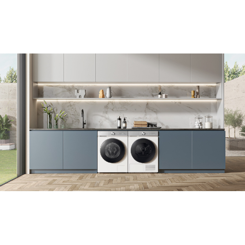 De Bespoke QuickDrive DV90DB7845GBU3 droogkast warmtepomp van Samsung heeft een modern design met een elegante zwarte afwerking. De omkeerbare deur van gehard glas biedt flexibiliteit in het gebruik en past zich aan de indeling van je wasruimte en je voorkeuren aan. Met een droogcapaciteit van 9 kg is hij ontworpen om grote hoeveelheden wasgoed in één keer te drogen, wat ideaal is voor grote gezinnen. Dit model is ontworpen om vrijstaand te worden geïnstalleerd en past visueel en fysiek gemakkelijk in je badkamer, wasruimte of garage.
