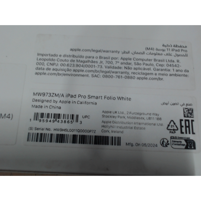APPLE Bookcover iPad Pro 11'' 5th Gen Smart Folio Wit (MW973ZM/A)