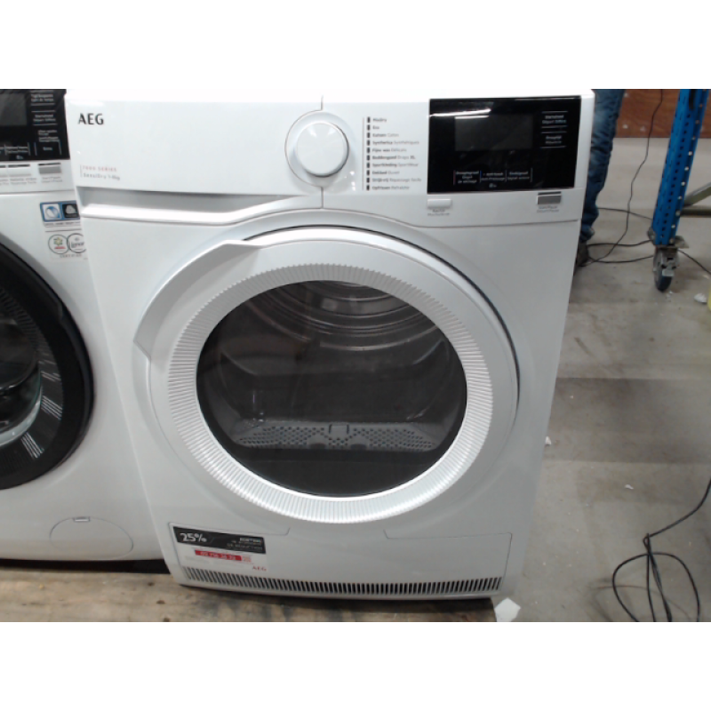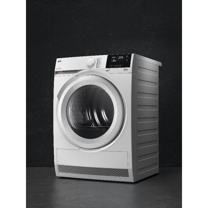 De witte AEG ProSteam Serie 7000 TR78L32B warmtepomp droogkast garandeert, dankzij zijn efficiënte invertermotor en PreciseDry-technologie, een perfect droogresultaat. Je beschikt over 8 kg trommelcapaciteit en 10 programma’s voor elk soort stof.
