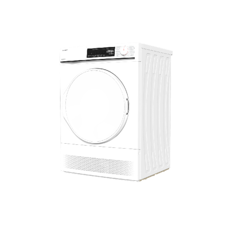 De witte KD-NC8PW-BE condensatiedroogkast van Sharp heeft een elegant ontwerp en is eenvoudig vrijstaand in elke badkamer of bijkeuken te installeren. Dankzij de indrukwekkende capaciteit van 8 kg kun je grote hoeveelheden wasgoed in één keer drogen. Hij is voorzien van een “Bumble Drum” die je kleding verzorgt, zodat ze zacht en kreukvrij blijft. Het moderne design en de grote capaciteit maken het een ideale keuze om je dagelijkse routine te verbeteren.