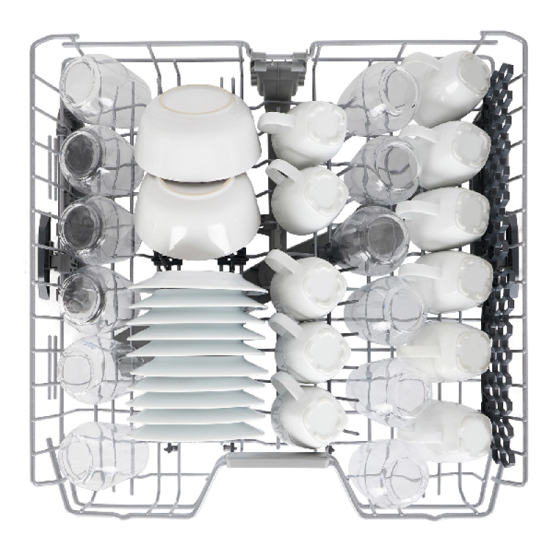 Dit apparaat is uitgerust met Selfdry-technologie die de deur aan het einde van de cyclus automatisch opent. Zodra de temperatuur in de tank onder de 43 graden is, gaat de deur 10 cm open en daardoor droogt de vaat aan de open lucht. Deze functie bespaart energie en verkort de duur van de cyclus. Deze vaatwasser verbruikt slechts 77 kWh en 9,5 liter water per wasbeurt. Hij werkt geruisloos en produceert slechts 44 dB aan geluid. Bovendien heeft hij een innovatieve stervormige driedubbele wasarm die gelijkmatiger de vaat wast.