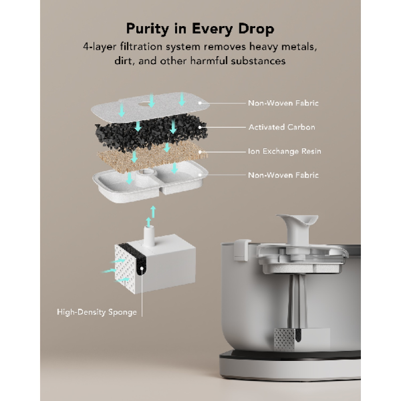 Geef je huisdier een continue toevoer van zuiver, vers water met de witte draadloze Dockstream fontein van Petlibro. Het 4-traps verticale filtersysteem garandeert water van uitzonderlijke kwaliteit en de ultrastille werking zorgt voor een rustige omgeving. Dankzij het heldere reservoir van 130 ml met vullijn en afneembaar deksel is hij gemakkelijk bij te vullen. Dit model werkt op een oplaadbare batterij die tot 30 dagen meegaat.
