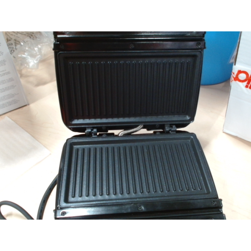Een croque-monsieurtoestel voor heerlijke panini's en croque-monsieurs of gegrild vlees dat gemakkelijk te reinigen is door de platen met antikleeflaag. Verticaal en snoeropbergvak waardoor het gemakkelijker in uw keuken kan worden opgeborgen, terwijl het isolerende handvat en de vergrendeling voor meer veiligheid zorgen. Met lampjes voor Aan/Uit en einde voorverwarming.