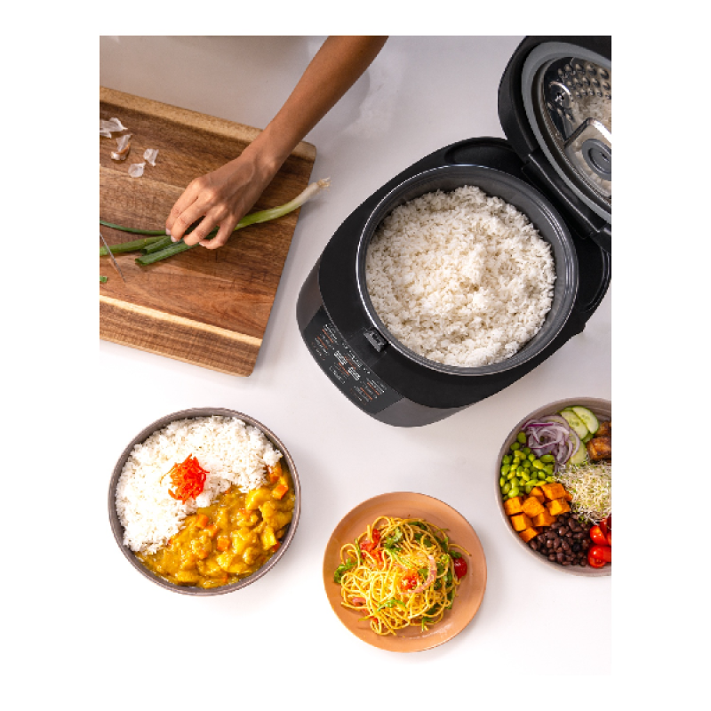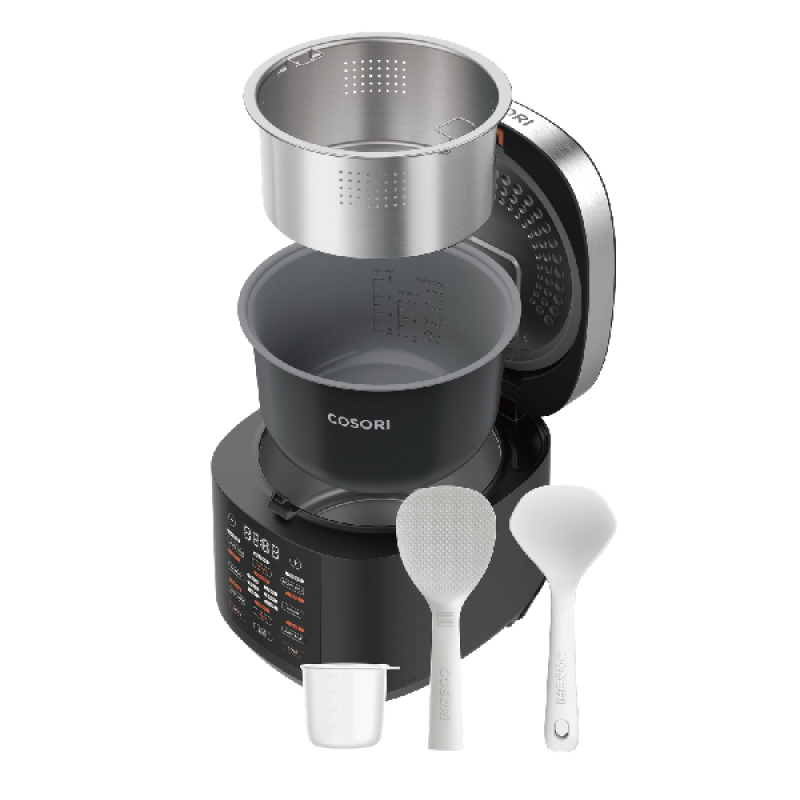 De zwarte multikoker van Cosori zal gemakkelijk zijn plaats vinden in je keukenparafernalia. Met dit veelzijdige apparaat kook je verschillende soorten rijst, granen, groenten of zelfs soepen en sauzen tot in de perfectie. Het is eenvoudig te bedienen via het touchscreen aan de voorkant en heeft een handige warmhoudfunctie. De anti-aanbak binnenbak is vaatwasmachinebestendig. Met zijn 8 kookprogramma's en 5 liter volume is deze multicooker perfect om voor het hele gezin te koken. Als je bang bent dat je culinaire inspiratie opraakt, kun je je verdiepen in het bijgeleverde receptenboek.