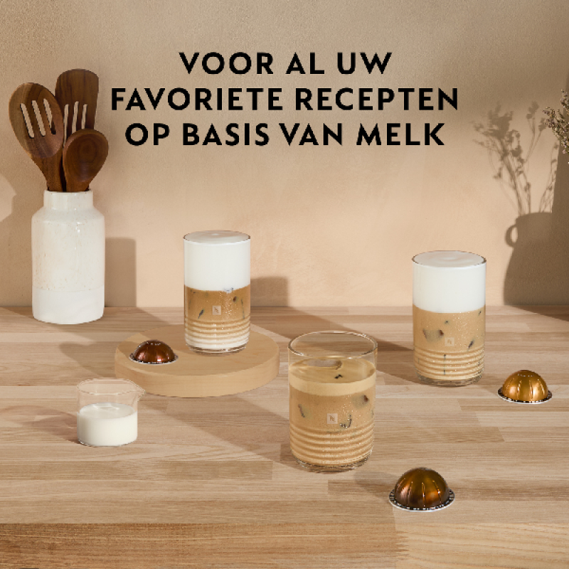 Deze machine werkt uitsluitend met Vertuo Grands Crus capsules, verkrijgbaar in 3 formaten. Er bestaat 18 verschillende Grands Crus smaken om korte of lange, sterk of licht heerlijke koffies te bereiden. Door de barcode op de capsule te scannen, detecteert de machine het type koffie dat je wilt en past de bereidingsparameters daarop aan: extractievolume en -snelheid, watertemperatuur, rotatiesnelheid en infusietijd. Zo wordt elk kopje koffie perfect bereid. Je kan 5 verschillende kopgroottes bereiden: enkele en dubbele espresso, gran lungo, mug en XL-koffie.