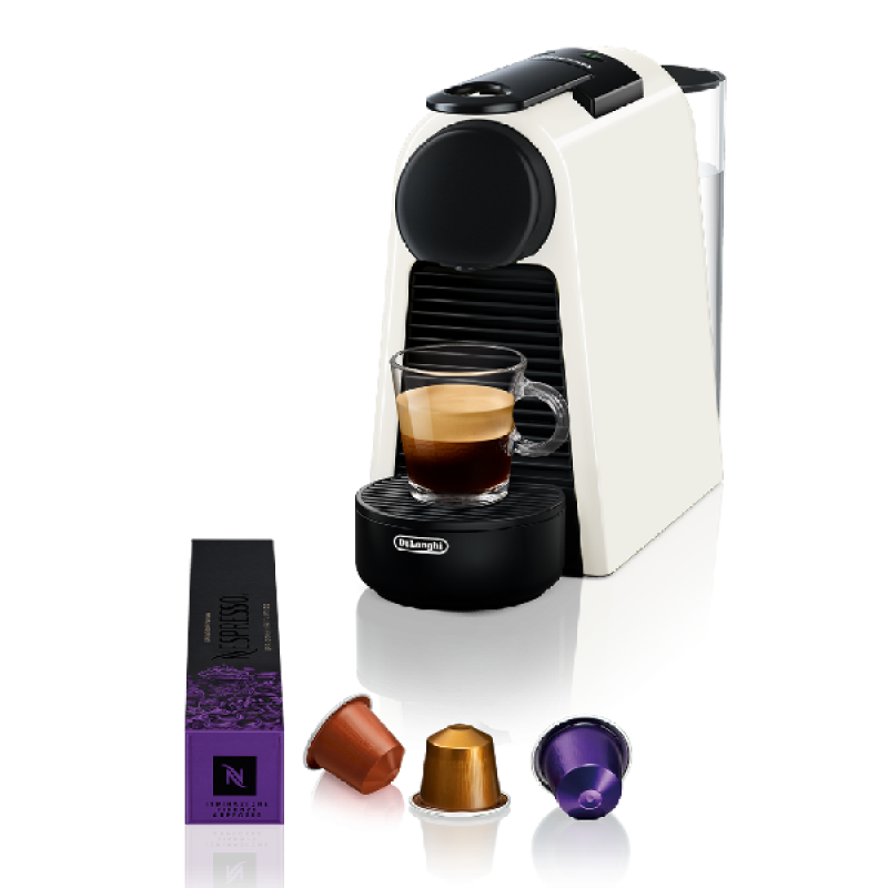 De De'Longhi Nespresso Essenza Mini (EN85.B) in wit is de ideale koffiemachine voor wie thuis wil genieten van heerlijk koffiegenot. Met deze minimalistische en energiezuinige capsulemachine zet je in een handomdraai allerlei heerlijke koffiedranken.