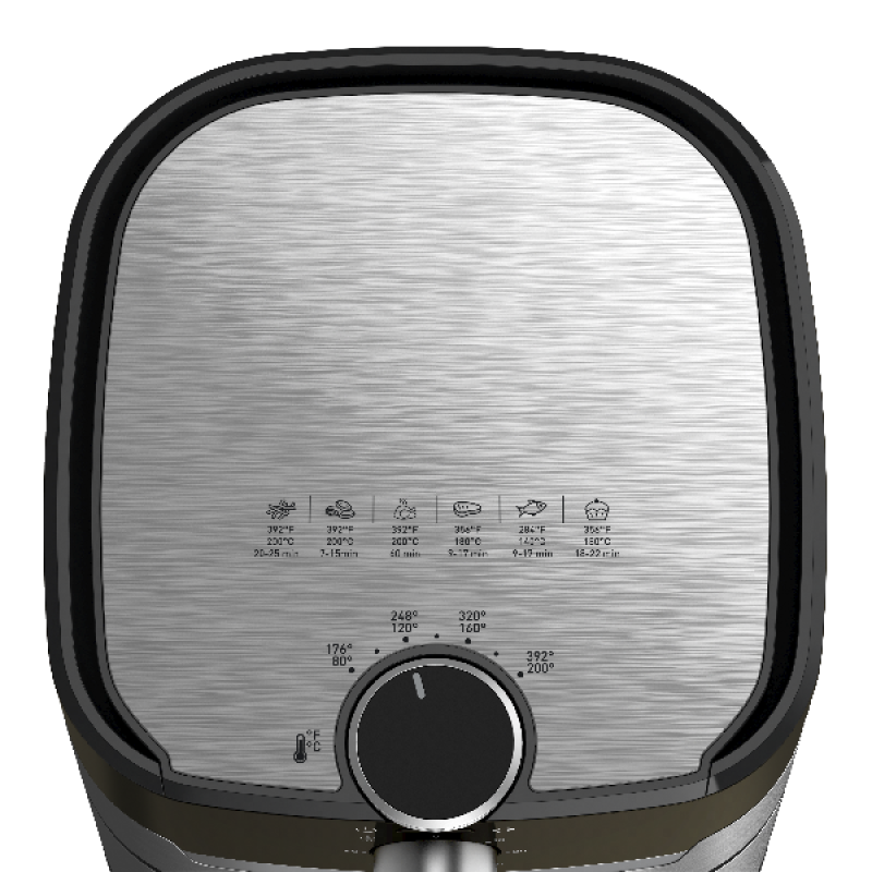 Deze airfryer met zijn strakke moderne design heeft een capaciteit van 4,2 liter, ideaal voor het bereiden van lekkere maaltijden voor een gezin van 4 tot 6 personen. Met de uitneembare frituurmand kan je in één keer 800 gram frietjes bakken, zodat iedereen tegelijk kan genieten. Het apparaat is heel eenvoudig te gebruiken: selecteer het soort voedsel dat je wilt bereiden, pas de temperatuur aan en het apparaat begint op te warmen. Hij warmt snel op van 80 tot 200°C en wanneer hij op temperatuur is, plaats je het voedsel van je keuze erin en een paar minuten later is het lekker smullen!
