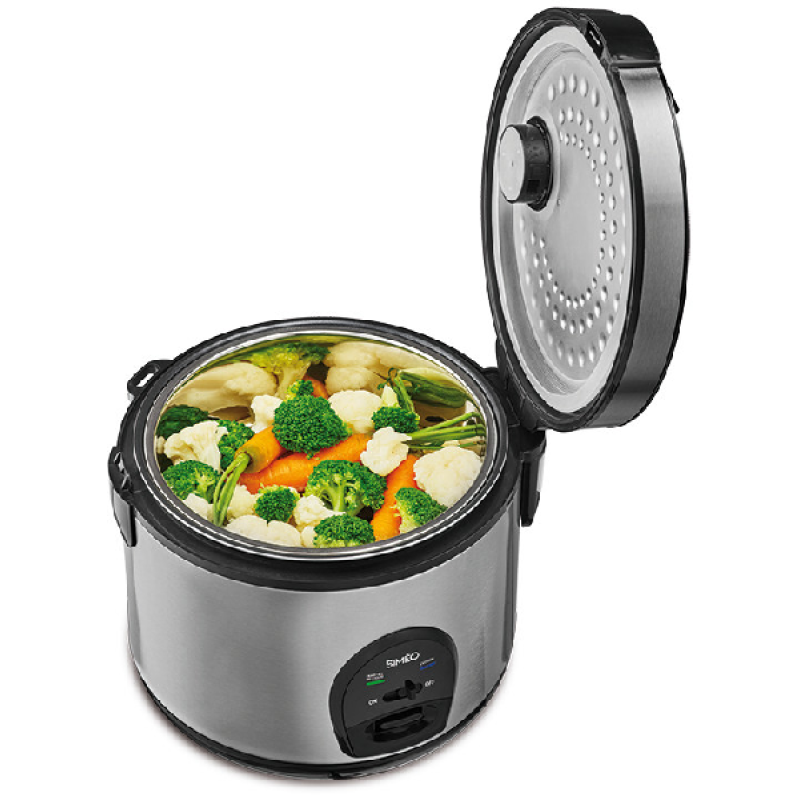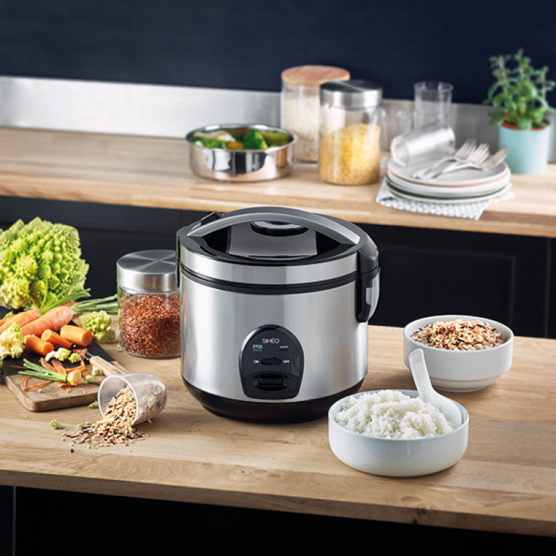 Met de Simeo rijstkoker voeg je een nieuwe dimensie aan je kookkunsten toe. In het grote kookvolume van 3 liter maak je genoeg rijst klaar voor het hele gezin, terwijl je in de stoommand heerlijke gestoomde groenten kan bereiden. Zijn schuifknop verzekert een eenvoudig gebruik, terwijl het vermogen van 500 watt de temperatuur gelijkmatig verdeelt. Wanneer hij klaar is met koken, houdt dit apparaat de rijst ook warm. Na gebruik maak je de onderdelen ook eenvoudig schoon.