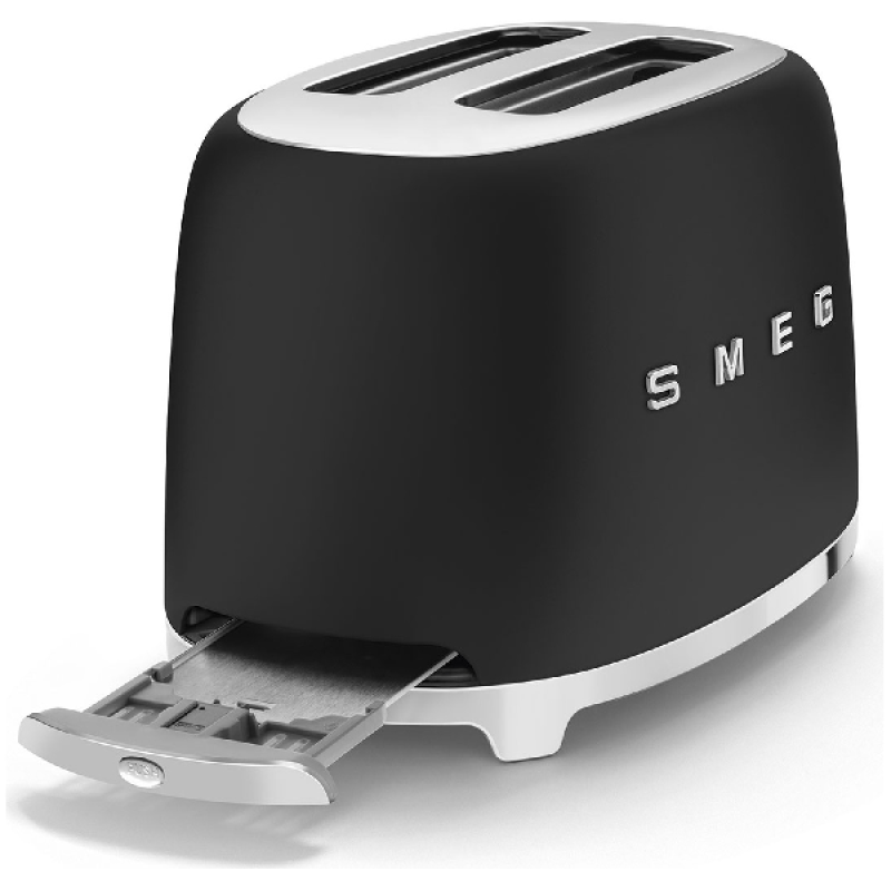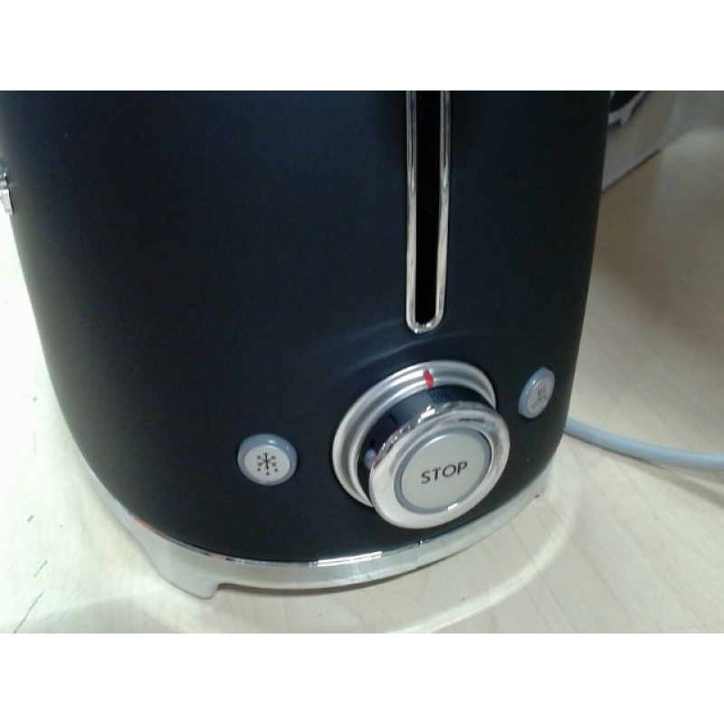 Trefwoorden Broodrooster, retro, Smeg, jaren 50, matzwart, 2-sneetjes, automatisch centreren, kruimellade