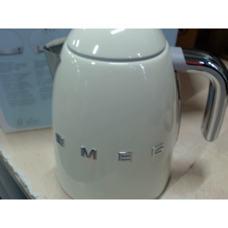 Deze variabele elektrische waterkoker in crèmewitte afwerking uit de KLF04-serie van Smeg komt uit de jaren 50 collectie. Hij heeft afgeronde lijnen, een glanzende coating en roestvrijstalen elementen die doen denken aan de Streamline-stijl. De KLF04 combineert een uniek vintage ontwerp met technische innovatie en 2.400 watt vermogen om water snel en veilig op te warmen tot de ideale temperatuur. Voor praktisch gebruik is hij voorzien van een automatische uitschakeling van de waterverwarming en een warmhoudfunctie. Hij heeft een ruime inhoud van 1,7 liter en een snoer van 1 meter lang. Dit kleine apparaat is een echt designobject met een tijdloze afwerking en laat je in stijl van je keuken genieten.