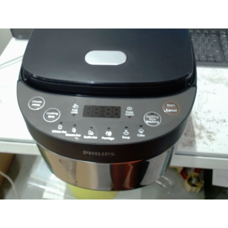 Met deze rijstkoker van Philips in zwart en zilver kook je rijst met gemak tot in de perfectie. Hij heeft verschillende kookstanden, afhankelijk van wat je precies wilt koken (witte rijst, bruine rijst, sushirijst, havermout) en je kunt er zelfs soepen en cupcakes mee maken. Je kunt het apparaat in een paar klikken instellen op het digitale bedieningsscherm. Hij heeft 600 watt vermogen, een 80 cm lang netsnoer en een warmhoudfunctie. Met zijn bescheiden afmetingen van 20 x 25 x 37 cm kun je hem op je werkblad zetten en opbergen zoals je wilt. Het rijstmandje, de maatbeker, de lepel en het stoommandje zijn vaatwasmachinebestendig.